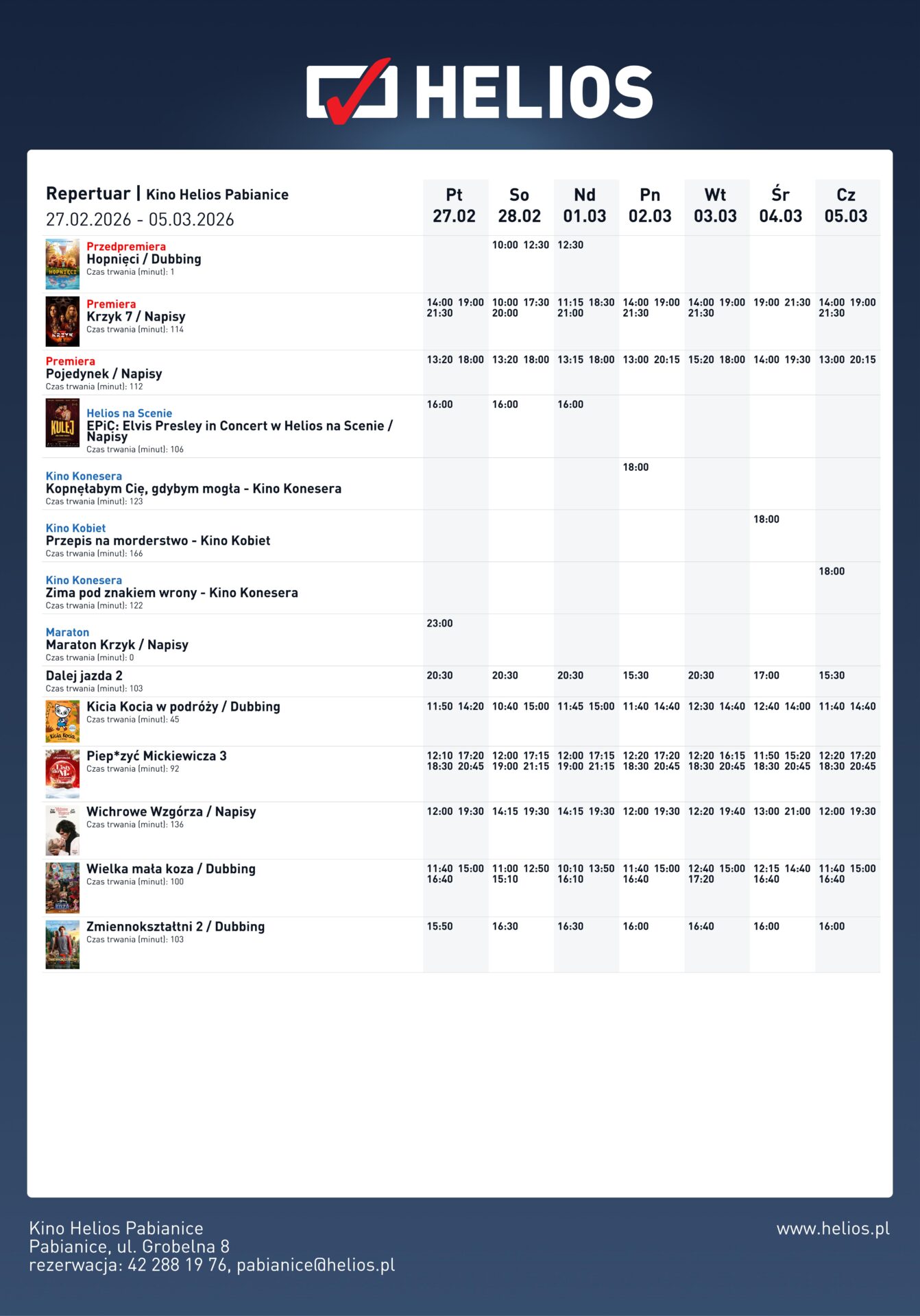 Przełom lutego i marca przyniesie premierę dwóch wyczekiwanych tytułów – dramatu historycznego „Pojedynek” oraz kontynuacji serii horrorów „Krzyk 7”. Ponadto widzowie sieci mogą wybierać z szerokiej oferty seansów specjalnych, takich jak Kino Kobiet czy Nocne Maratony Filmowe, a także wielu hitów obecnych w bieżącym repertuarze.