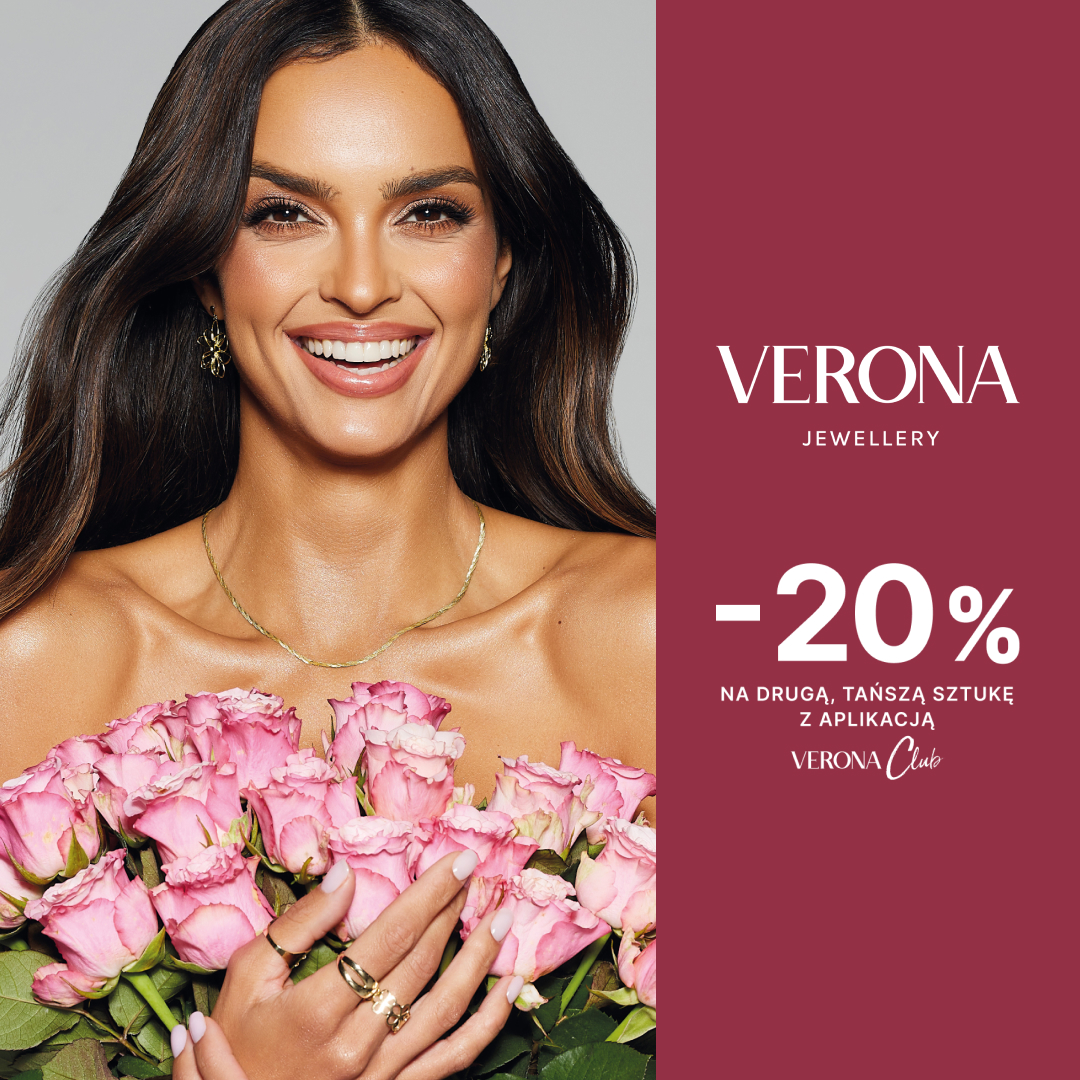 Zyskaj -20% na drugą, tańszą sztukę biżuterii z aplikacją Verona Club ✨